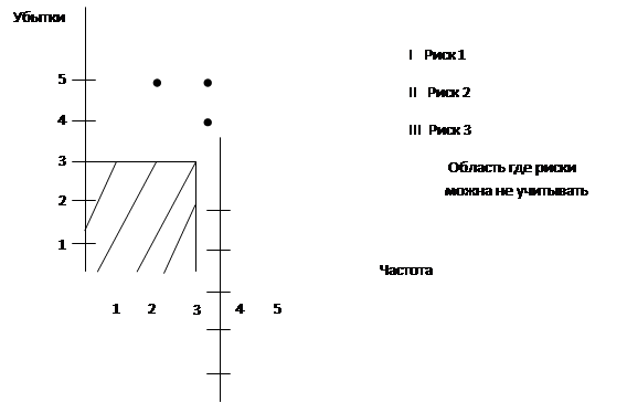 Максимальная частота и убыток равны 5. Поэтому за значение риска после которого стоит обратить особое внимание возьмём 3*3=9. Все риски оцененные выше 9 будут тщательно рассмотрены(выделены в таблице). И даны рекомендации по понижению этой оценки(гр.1).