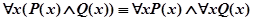 313) Из предикатов примера 310 образовать с помощью кванторов высказывания, найти их значения истинности. § 2. ОСНОВНЫЕ РАВНОСИЛЬНОСТИ, СОДЕРЖАЩИЕ КВАНТОРЫ. ПРИМЕНЕНИЕ АЛГЕБРЫ ПРЕДИКАТОВ К АНАЛИЗУ МАТЕМАТИЧЕСКИХ УТВЕРЖДЕНИЙ. 314) Доказать следующие равносильности: 1) 2) 3) 4) 5) 6) 7) 8) 9)