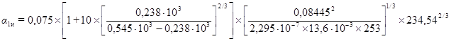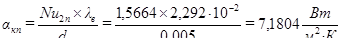 где Nu1п - число Нуссельта, характеризующее интенсивность теплоотдачи от паров хладагента; λ1п - коэффициент теплопроводности паров хладагента при температуре Тх = 0,5×[(T7 -15) + Тк ]=342,475К; d1к - внутренний диаметр трубопровода.