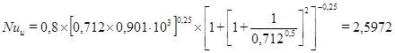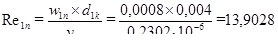 где W1 t - средняя скорость хладагента на участке тепловой стабилизации; υ1 t = 0,2418× 10-6 м2 /с - коэффициент кинематической вязкости хладагента при температуре Тx .