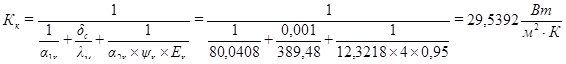 Расчет коэффициента теплопередачи производится по формуле (4)