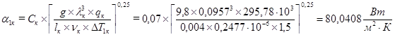 где Рrв - число Прандтдя для воздуха при Tw , характеризующее соотношение молекулярных свойств в процессе переноса теплоты Рrв =0,712; Сг - число Грасгофа, характеризующее эффективность подъемной силы, вызывающей свободную конвекцию воздуха.