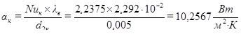 где Nu2 t - число Нуссельта; λв =2,688×10-2 Вт/м·К - коэффициент теплопроводности воздуха при температуре Тос ; d2K - наружный диаметр трубопровода.