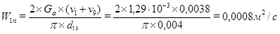 где W1п - средняя скорость хладагента на участке тепловой стабилизации; V1п - коэффициент кинематической вязкости хладагента при температуре Тх .