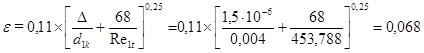 где ε - коэффициент гидравлического сопротивления; Re1 t - число Рейнольдса, характеризующее соотношение сил инерции и сил вязкости в потоке паров хладагента; Рr1 t -число Прандтля, характеризующий соотношение молекулярных свойств переноса количества движения и теплоты и определяемый при температуре Тx .
