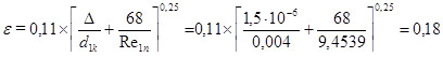 где ε - коэффициент гидравлического сопротивления; Re1п - число Рейнольдса, характеризующее соотношение сил инерции и сил вязкости в потоке паров хладагента; Рг1п - число Прандтля, характеризующее соотношение молекулярных свойств переноса количества движения и теплоты и определяемый при температуре Тх .