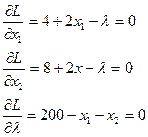 Для ее расчета применим метод множителей Лагранжа. Составим функцию Лагранжа L(x1,