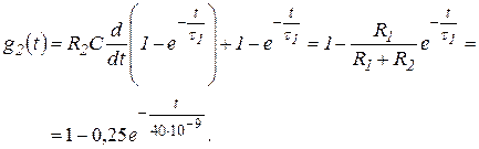 Обратить внимание, что 1.2 Импульсная характеристика цепи h (t ) есть производная от переходной характеристики h (t ) = g ¢(t ). Однако следует учесть, что, если переходная характеристика отлична от нуля при t = 0, т.е. имеет скачок при t = 0, то при дифференцировании появляется дополнительное слагаемое: h (t ) = g(0)d (t ) + g ¢(t ). В рассматриваемой задаче