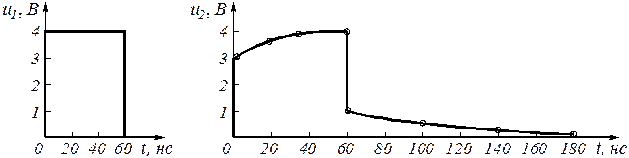 Временной метод расчета 2. Рассчитайте переходную 3. Рассчитайте реакцию цепи в виде выходного напряжений - интеграл Дюамеля; - интеграл наложения. 4. Постройте временные диаграммы входного и выходного напряжений.