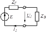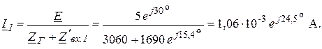 Рассмотрим схему замещения входного сосредоточенного узла длинной линии (рис. 4.6) при условии, что По закону Ома для одноконтурной схемы замещения рассчитываем комплексную амплитуду входного тока линии: