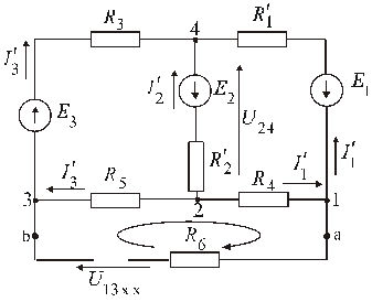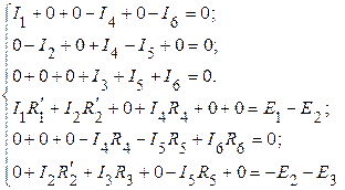Рис. 2 3. Составляем часть уравнений расчетной системы, используя только первый закон Кирхгофа. Выбираем