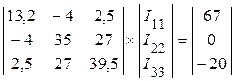 и представляем в матричной форме записи, подставив численные значения составляющих системы контурных уравнений
