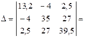 6. Решаем полученную систему контурных уравнений, используя правило Крамера []: 6.1. Вычисляем главный определитель системы, разворачивая квадратную матрицу контурных сопротивлений по первой строке (следует заметить, что величина определителя не зависит от того, по какой строке или столбцу его разворачивают)