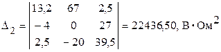 6.2. Вычисляем дополнительные определители системы, последовательно заменяя столбцы матрицы контурных сопротивлений матрицей-столбцом контурных ЭДС. Каждый дополнительный определитель рассчитываем, разворачивая его по первой строке аналогичным образом