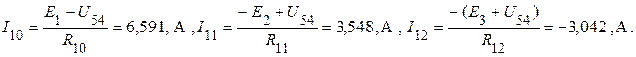 Определяем токи в ветвях, используя обобщенный закон Ома