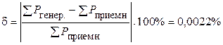 Видно, что значения суммарных мощностей практически совпадают. В то же время на примере баланса мощностей покажем проверку корректности расчета любого параметра, указанного в задании. Воспользуемся абсолютным значением относительной погрешности