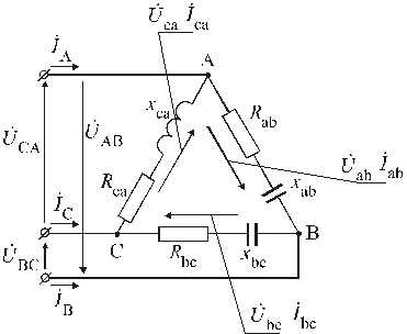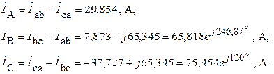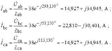 4. По закону Ома определяем фазные токи