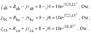 3. Рассчитываем комплексные сопротивления фаз приемника