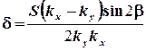 где Sx , Sy , S – подачи по координатам Х, У и контурная соответственно; kx , ky – добротности контуров управления соответственно по координатам Х и У; e x , e y – скоростные ошибки в контурах управления по координатам Х, У; b – угол наклона отрезка обрабатываемого контура к координатной оси Х. Проделав необходимы преобразования, найдем алгебраическую сумму проекций соответствующих скоростных ошибок на нормаль к отрезку