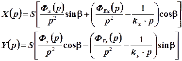 На основании (25) с помощью метода неопределенных коэффициентов можно представить изображение по Лапласу переходного процесса по координате У