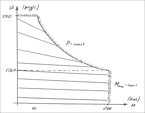 Режим работы привода в тепловом отношении - продолжительный (S1) во всем диапазоне скоростей. Направление вращения - реверсивное, перегрузочные способности в обе стороны одинаковы. Тормозные режимы привода – кратковременные. Продолжительная работа привода предусматривается в двигательных квадрантах (1 и 3). Торможение в 2 и 4 квадрантах предназначено для гашения кинетической энергии вращающихся частей . Поэтому специальных мер для рекуперации или утилизации энергии торможения не предусматривается, достаточно штатных резисторов в звене постоянного тока преобразователя частоты в инверторном режиме. Допустимо динамическое торможение постоянным током и энерговыделением в двигателе при условии обеспечения регламентируемого темпа торможения (см.ниже) Точность поддержания скорости В установившихся режимах при квазистатической нагрузке точность стабилизации скорости - 0.25 %. В зоне низких скоростей 5.2 рад/с…84рад/с допускается постоянство абсолютной погрешности от верхней границы скорости 025% *800 мин-1 =2 мин-1 =0.21 рад/с. Данное требование означает применение двукратно-интегрирующей САР скорости с пропорционально-интегральным (ПИ) регулятором скорости и встроенного датчика скорости. Нужно иметь в виду, что бездатчиковые системы, базирующиеся на косвенном измерении скорости с использованием математической модели двигателя, имеют невысокую стабильность, порядка единиц процентов. Это обусловлено изменением параметров двигателя при прогреве и старении. Пристраиваемый датчик скорости также имеет ограниченную точность вследствие конечной точности центровки. Эта кинематическая погрешность проявляется в виде оборотных пульсаций сигнала датчика. Можно показать, что несоосность порядка 0.1 мм приводит к амплитуде пульсаций порядка 1…3%. Динамическая точность поддержания скорости Dw при изменении нагрузки 0…200 Нм требуется не хуже 1%.(?) Это позволяет оценить требования к быстродействию САР в режиме стабилизации скорости. Принимая указанный момент за номинальный Мном = 200 Нм, оценим частоту среза контура скорости Wcр. Для предварительных оценок необходимо знание момента инерции механизма и двигателя. Для подходящих по скорости и мощности асинхронных двигателей 4А180М4У3, 30.0 кВт, 1470 мин-1 Jдв=0.23 кг*м2 ; для двигателя АИР180М4, 30.0 кВт, 1470 мин-1 , Jдв=0.2 кг*м2 . Принимаем момент инерции механизма равным моменту инерции двигателя: Jsum = 0.4 кг*м2 ; (2) Постоянная времени механической инерции Тj (время разгона до номинальной скорости с номинальным моментом): Тj =Jsum*Wном/Мном=0.4*150/200=0.3 с. (3) Частота среза контура скорости: Wср=0.95*mc /(Dwдин*Тj )=0.95*1/(0.01*0.3)=317 рад/с. Это нереально высокое быстродействие, требующее некомпенсируемой постоянной внутреннего контура Тm: Тm=1/(4* Wср)=1/(4*317)=0,78 мсек. Имеющиеся сегодня на рынке электроприводы (в том числе постоянного тока) позволяют получать частоту среза порядка Wср =50…80 рад/с, Тm=3…5 мсек. Соответственно, при ступенчатом приложении номинальной нагрузки динамическое падение скорости составит Dw=3..5 %, с последующим восстановлением до заданного значения. Вероятнее всего, необходимо уточнение режима изменения нагрузки, для которого задано Dw =1%.(?) Пожаро- и взрывобезопасность. Недопустимо наличие искрообразования в двигателе. Это исключает применение приводов с электромеханической коммутацией- двигателей постоянного тока, коллекто