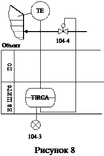 5 Измерение температуры многоточечным прибором ( TJIR , рисунок 9) 105-1 – 105-3 Термопреобразователи сопротивления (ТСП-6097), 105-4 - электронный мост (КСП-4)