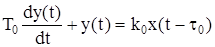 где s – оператор Лапласа; X(s) – изображение входной переменной в операторной форме; Y(s) – изображение выходной координаты в операторной форме. На практике объект управления обычно аппроксимируется звеном с передаточной функцией не выше 2-го порядка с запаздыванием /3/. Типовые уравнения, описывающие объект управления с самовыравниванием, могут быть представлены в виде дифференциальных уравнений с постоянными коэффициентами /1,3/. Для объекта 1-го порядка с запаздыванием: