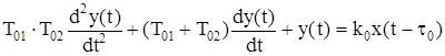 где T0 – постоянная времени; t0 – время запаздывания; k0 – коэффициент передачи объекта по каналу управления. Для объекта 2-го порядка с разными постоянными времени: