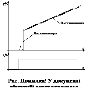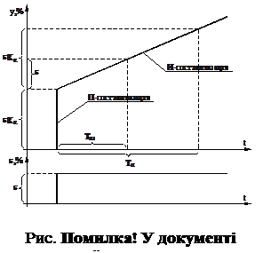 когда цикл цифрового регулятора сравним или больше постоянной времени регистрирующего прибора. В нашем случае уже при цикле 1с и более может быть выявлена дискретность работы цифрового регулятора. Кроме того, цифровой регулятор имеет так называемое аппроксимационное запаздывание t/5/, пропорциональное времени цикла. Кривая разгона цифрового ПИ-регулятора может иметь вид рис.2.6. При этом статическая составляющая практически не отличается от таковой у аналогового регулятора, а астатическая (интегральная) принимает вид ступенчатой кривой. Для идентификации этой составляющей упомянутая кривая должна быть графически аппроксимирована прямой линией (пунктир на рис.2.6), дабы экспериментально полученная кривая разгона рис.2.6 была приведена к виду рис.2.1. Затем проводится идентификация интегральной составляющей как описано в разделе 2.2. Идентификация дифференциальной составляющей цифрового регулятора по кривой разгона еще более затруднена в сравнении с аналоговым регулятором.