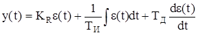 e, пропорциональную рассогласованию, после чего выходная координата регулятора дополнительно изменяется в ту же сторону со скоростью, также пропорциональной рассогласованию. Следовательно, в ПИ-регуляторе при отклонении регулируемой величины от заданного значения мгновенно срабатывает пропорциональная (статическая) часть регулятора, а затем воздействие на объект постепенно увеличивается под действием интегральной (астатической) его части.