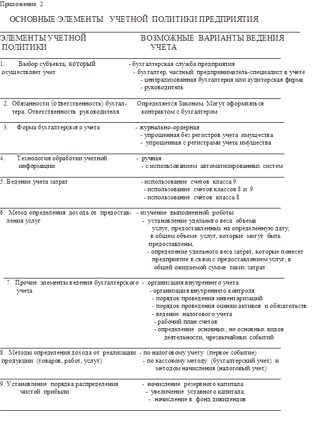 Введение Реформирование системы бухгалтерского учета в Украине предполагает создание механизма отражения информации отчетного периода и сопоставление данных разных отчетных периодов. Такой подход к ведению бухгалтерского учета обеспечивает получение пользователями финансовой отчетности материалов соответствующего качества. Указанная выше цель на предприятии реализуется созданием системы нормативной документации - цены, порядок оценки, система переоценки имущества, инвентаризация, внутренний контроль, определение справедливой стоимости приобретенных идентифицированных активов и обязательств, инструкции, положения, прочая документация. С точки зрения регламентации бухгалтерского учета такую систему нормативов можно представить как совокупность внутренних регуляторов и регламентов. Основными документами, в которых сформулировано регулирование учета, являются система учетных оценок и учетная политика предприятия. Учетная политика направлена на обеспечение точности и правильности определения основного финансового результата деятельности предприятий - прибыли, прочих элементов учета, защита имущественных прав собственника, партнеров по бизнесу, инвесторов, кредиторов. На аудит, который занимает промежуточное положение между пользователями финансовой отчетности и процедурами ведения бухгалтерского учета, возложена специфическая задача по оценке места учетной политики в системе ведения учета. Отсутствие специальных положений (стандартов) бухгалтерского учета по учетной политике и незначительная про времени практика предприятий Украины по политике вызывает определенные трудности. В приведенном ниже реферате автор рассматривает создание учетной политики предприятия и использование аудиторских процедур в отношении этого нового объект аудита. Автором реферата вначале раскрываются вопросы нормативного характера - место учетной политики в создании финансовой отчетности предприятия согласно новым положениям ведения бухгалтерского учета, затем рассматриваются конкретные аспекты политики относительно отдельных объектов учета. Наконец рассматриваются аудиторские процедуры оценки политики. Такой подход дал возможность автору реферата сделать определенные выводы и предложения. Реферат изложен на 13 стр., имеет 1 схему, 2 рис., 1 табл., 2 приложения и список использованной литературы из 14 наименований. 1. Основные понятия учетной политики предприятия 1.1. Учетная политика как элемент финансовой отчетности предприятия Учетная полтика - совокупность принципов, методов и процедур, которые используются предприятием для составления и представления финансовой отчетности. Учетная политика является неотъемлемой частью финансовой отчетности предприятия по национальным положениям (стандартам) бухгалтерского учета (ПСБО) Украины. Финансовая отчетность предприятия - это бухгалтерская отчетность, которая содержит информацию о финансовых результатах деятельности и движении денежных средств за отчетный период (ст. 1 Закона и ст. 3 ПСБО 1). В состав финансовой отчетности предприятия в соответствии с Законом (ст. 11 п. 2) и ПСБО 1 (ст.8) включаются Баланс, Отчет о финансовых результатах, Отчет о движении денежных средств, Отчет о собственном капитале и Примечания к отчетам . ПСБО 1”Общие требования в финансовой от