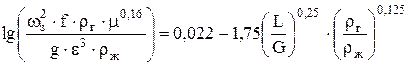 Фиктивная скорость газа в точке захлебывания (инверсии) рассчитывается по уравнению