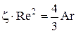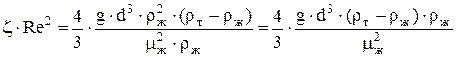 Совместное решение уравнения (13) с уравнениями (6 - 8) дает критериальные уравнения, описывающее гравитационное осаждение. В ламинарном режиме при