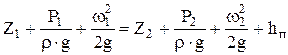 С помощью этого уравнения решается ряд практически важных задач. Можно определить один из параметров для какого-либо сечения потока, зная два других параметра для этого сечения и все параметры для второго сечения. Уравнение (1) справедливо для идеальной жидкости, в которой нет потери напора на преодоление сил трения. При движении реальной (вязкой) жидкости начинают действовать силы внутреннего трения, обусловленные вязкостью жидкости, и силы трения о стенки трубы, вызванные шероховатостью стенок. Эти силы оказывают сопротивление движению жидкости. На преодоление сопротивления расходуется некоторая часть энергии потока. Потерянная при этом энергия превращается в тепло, которое безвозвратно теряется в окружающую среду. Для соблюдения баланса энергии при движении реальной жидкости в правую часть уравнения (1) вводится член