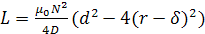 Поскольку средний диаметр катушки D >> d , то средним диаметром витка в знаменателе под корнем можно пренебречь. При скин-эффекте ток течет по поверхности провода, поэтому исключая часть площади проводника из площади витка, по этой причине происходит изменение индуктивности катушки. После некоторых преобразований была получена следующая формула.