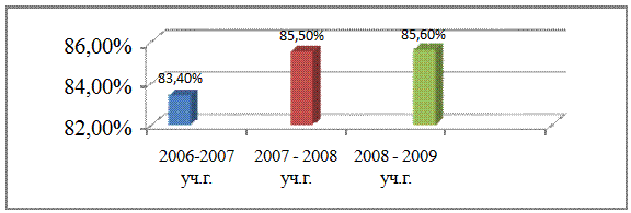 ОРГАНИЗАЦИЯ ПИТАНИЯ Питание детей в нашем дошкольном образовательном учреждении полноценное, разнообразное по составу продуктов и полностью удовлетворяет физиологические потребности растущего организма. Мы придерживаемся основных принципов рациональной организации питания: - Строгий режим; - Временная продолжительность приемов пищи; - Количество приемов пищи; - Правильное количественное и качественное распределение пищи на отдельные приемы. Приготовление пищи производится в собственной кухне шеф-поваром и поваром. Продукты питания поставляются предприятием Московский школьник. Питание воспитанников осуществляется в соответствии с «Типовым рационом питания детей от 1,5 до 3-х лет и от 3-х до 7 лет в дошкольных образовательных учреждениях города Москвы». Государственное образовательное учреждение детский сад №2292 имеет договор с организацией о порядке обеспечения и доставки питания для выполнения Типового рациона питания детей дошкольного возраста в дошкольных образовательных учреждениях с 12-часовым и 24-часовым пребыванием детей, разработанный отделом детского питания ГУ НИИ питания РАМН. РЕЗУЛЬТАТЫ ВОСПИТАТЕЛЬНО-ОБРАЗОВАТЕЛЬНОЙ ДЕЯТЕЛЬНОСТИ Анализ выполнения программы (в % за 3 учебных года) В нашем детском саду воспитательно-образовательный процесс строится на комплексной программе «Истоки», разработанной центром «Дошкольное детство» им. Запорожца. Программа опирается на идеи А.В. Запорожца о самобытности детства, как особого этапа созревания организма ребенка, на принципе личностно-ориентированного взаимодействия взрослых с детьми. Данные педагогической диагностики усвоения детьми программы «Истоки»