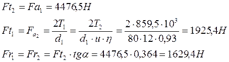 Уточненное значение h соответствует ранее принятому. 12. Определяем силы в зацеплении: