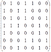– множества всех прямоугольных и равносторонних треугольников на плоскости соответственно; универсальное множество – множество всех треугольников на плоскости. какие треугольники содержатся в множествах 1.3. Найти множество 1.4. Доказать, что 1.5. Доказать, что если 2. Бинарные отношения. 2.1. Пусть 2.2. Пусть 2.3. Для разбиения 2.4. Пусть 2.5. Пусть 3. Логика высказываний. 3.1. Является ли высказыванием предложение «треугольник называется равносторонним, если все его стороны равны»? 3.2. Сформулируйте отрицания следующих высказываний и укажите значения истинности высказываний и их отрицаний: «Картофель относится к семейству розоцветных»; «картофель не относится к семейству пасленовых». 3.3. Являются ли следующие высказывания отрицаниями друг друга (объяснить почему): «человеку известны все виды животных, обитающих на Земле», «на Земле существует вид животных, не известный человеку». 3.4. Следующее сложное предложение требуется расчленить на простые и записать с использованием логических связок: «Обидно, если в пору цветения садов не сочиняют стихи и не наполняют чарки вином» (Цзацзауань. Ли Шан-Инь). 3.5. Записать таблицу истинности для формулы: 4. Теория графов. 4.1. В шахматном турнире по круговой системе участвуют семь студентов. Известно, что Ваня сыграл шесть партий, Толя – пять, Леша и Дима – по три, Семен и Илья – по две, Женя – одну. С кем сыграл Леша? 4.2. Насыщенным углеводородом называется соединение углерода C , имеющего валентность 4 и водорода H , имеющего валентность 1, в котором при заданном числе атомов углерода содержится наибольшее число атомов водорода. Найдите формулу насыщенного углеводорода, содержащего n атомов углерода. 4.3. Мэрия решила построить торговый центр в каждом квартале города, имеющего 155 перекрестков и 260 отрезков улиц между перекрестками. Сколько будет построено торговых центров? 4.4. На пир при дворе короля Артура собралось четное число рыцарей, которые либо дружат, либо враждуют. Оказалось, что у каждого из рыцарей друзей больше, чем врагов. Доказать, что волшебник Мерлин может так рассадить рыцарей за круглым столом, что справа и слева от каждого из них будет сидеть друг. 4.5. Образовавшийся коммерческий университет арендует здание для проведения занятий. В четверг проводится 7 лекций: право, английский язык, французский язык, экономика, менеджмент, маркетинг, этикет. Чтение каждой лекции в отдельности занимает один час, но некоторые лекции не могут читаться одновременно, например, их читает один и тот же лектор, или есть студенты, которые должны посещать разные лекции, или для их проведения нужна одна и та же аудитория и т.д. (В таблице крестиком отмечены лекции, которые не могут читаться одновременно). Определите минимальное время, за которое могут быть прочитаны лекции в четверг.