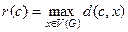 Радиус графа G определяется как наименьший из условных радиусов графа, а центр графа составляют вершины, условные радиусы графа относительно которых совпадают с радиусом графа. Для данного графа таблица расстояний и условных радиусов вершин имеет вид: