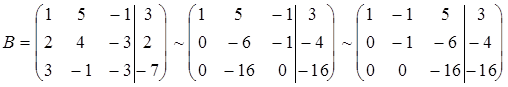 Решение: Совместность данной системы проверим по теореме Кронекера - Капелли. С помощью элементарных преобразований найдем ранг матрицы