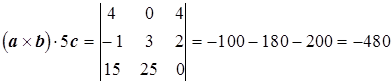 Даны векторы Необходимо: а) вычислить смешанное произведение трех векторов a , b , 5c ; б) найти модуль векторного произведения векторов 3c , b ; в) вычислить скалярное произведение двух векторов a , 3b ; г) проверить, будут ли коллинеарными или ортогональными два вектора a , b ; д) проверить, будут ли компланарны три вектора a , b , c . Решение: а) Так как