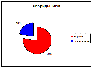 П1 , П2 , П3 - объем в мл AgNO3 , использованный на каждое из трех титрований. При содержании хлоридов менее 250 мг/дм³ берут 100 мл фильтрованной исследуемой воды. При большем содержании берут 10-50 мл. Исследуемую воду наливают в две конические колбы, доводят до 100 мл дистиллированной водой, прибавляют 5 капель раствора K2 CrO4 . Раствор в одной колбе титруют AgNO3 , а вторая колба используется для контроля. Содержание хлор-иона в воде рассчитывается по формуле: