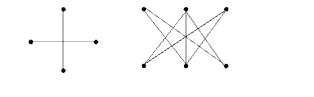 Граф называется двудольным , если существует такое разбиение его вершин на две части (доли) такие, что концы каждого ребра принадлежат разным частям. Полный двудольный граф, доли которого состоят из p и q вершин, обозначается символом K p , q . На рисунке ниже изображены полные двудольные графы K1,4 , K3,3 .
