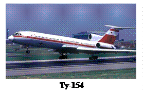 В 1972 г. вышел на линии Аэрофлота новый 164-местный пассажирский самолет Ту-154, призванный заменить устаревшие Ту-104, Ан-12 и Ил-18. Ту-154 оснащен тремя двухконтурными турбореактивными двигателями НК-8 (конструкции Н.Д.Кузнецова) с тягой по 9500 кг и развивает крейсерскую скорость до 900 км/час. Среднемагистральный пассажирский самолёт Ту-154 разработан в ОКБ А.Н.Туполева. Он стал первым советским самолётом, который изначально создавался с большой перспективой использования и совершенствования в соответствии с требованиями технического прогресса и авиационной безопасности. Проектное задание ставило задачу создать самолёт, равный по дальности и надёжности Ил-18, скорости Ту-104 и посадочным характеристикам Ан-10. В 1968 году изготовлено 6 прототипов. 3 октября 1968 года экипаж лётчика-испытателя Ю.В.Сухова впервые поднял самолёт в небо. Серийное производство началось в 1969 году в Куйбышеве на заводе №18. В этом же году один из прототипов демонстрировался в Ле-Бурже. Испытания самолёта продолжались около 5 лет.