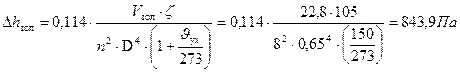 L=60 м- высота дымовой трубы l=0.05-коэффициент сопротивления для бетонных труб