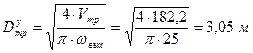 где QH , Q – номинальная и действительная теплопроизводительность котла, Гкал/ч. 4. Определяется диаметр устья дымовой трубы (м)
