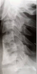 а) б) в) Рис.1. Больной В., 21 лет. Д–з: нестабильный перелом тела С6 позвонка. а – при поступлении; б – 7 дней после операции; в – 11 недель после операции. Существенных различий по средним срокам формирования костного блока в зависимости от уровня оперированных сегментов в наших наблюдениях не выявлено. Приблизительно в одинаковые сроки сформирован блок на уровне и высоко мобильных, и мало мобильных сегментов. Это касается как спондилодеза на одном сегменте, так и на двух сегментах. Функциональное рентгенографическое исследование, выполненное у больных по завершении формирования костного анкилоза, показало отсутствие подвижности на уровне оперированных сегментов. Данные рентгенографического исследования подтверждались компьютерной денситометрией. Средние показатели плотности формирующегося костного блока в единицах Хаусфилда нарастали постепенно, сравниваясь с плотностью прилежащих тел позвонков к моменту рентгенографической картины сформированного костного блока. В грудо-поясничном и поясничном отделах позвоночника использование Отдаленные результаты наблюдения за пациентами с повреждениями и заболеваниями шейного отдела позвоночника показали, что во всех наблюдениях в процессе формирования костного блока сохранилась достигнутая во время операции коррекция статики позвоночника. Признаков рассасывания костного блока не зарегистрировано. При этом больные вели активный образ жизни с сохранением двигательной нагрузки на шейный отдел позвоночника. После формирования костного блока трудоспособность у всех пациентов восстановлена, кроме пациента с болезнью Цукимото, имевшего инвалидность II группы еще до оперативного лечения и пациентов с метастазами в тела позвонков. У последних, однако, улучшилось качество жизни. Таким образом, полученные результаты оперативного лечения повреждений и заболеваний позвоночника указывают на целесообразность использования КоллапАна для оптимизации репаративных процессов в костной ране при операциях спондилодеза. При умеренных дефектах в шейном отделе позвоночника предлагаемая технология позволяет исключить костную аутопластику, что позволяет снизить травматичность оперативного вмешательства и исключает отрицательные моменты аллопластики. Использование КоллапАна для улучшения репаративного потенциала костной раны при спондилодезе пластинами Вильсона-Каплана является мерой профилактики вторичной компрессии тел позвонков в результате такого типичного осложнения, как развинчивание винтов конструкции. К моменту спонтанного развинчивания (если оно появляется) прочность тел позвонков уже восстановлена. Последующее нарушение прочности металлоконструкции в результате не вызывает вторичной компрессии тел позвонков. СПИСОК ЛИТЕРАТУРЫ 1. Басченко Ю.В. Физико-химические свойства нового биокомпозиционного материала для костной пластики “Коллапан”. // Докл. Науч.-практ. конф. “Применение “Коллапана” в травматологии и хирургии”. – Москва, ЦИТО им. Н.Н. Приорова, 3 октября 1996г. 2. Берченко Г.Н., Бурдыгин В.Н., Уразгильдеев З.И., Кесян Г.А., Басченко Ю.В., Макунин В.И., Бушуев О.М. Патоморфологическое обоснование использования материалов на основе гидроксиапатита для замещения дефектов костной ткани. // В кн.: Удлинение конечностей и замещение дефектов костей. – Республик