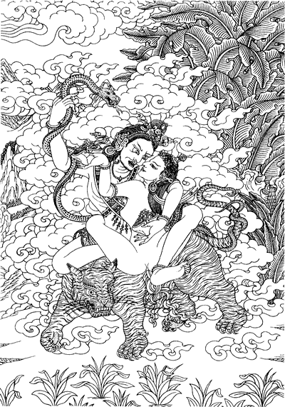 С благодарностью... Роберту Биэру, тибетскому иконографу, за предоставление нам своих замечательных рисунков и постоянное содействие в издании томов Агхоры. Д-ру Фредерику М. Смиту за составление словаря терминов и определений. Inner Traditions International за разрешение воспроизвести несколько иллюстраций, изображающих сиддхов, из « Мастеров чародейства» К. Даумэна и Р. Биэра. Allied Publishers Limited, Нью-Дели, Индия, за разрешение воспроизвести картину, изображающую Садашиву, которая украшает обложку этого тома. Об обложке: Вималананда объясняет это понятие следующим образом (из главы Кундалини): « Задача кундалини-йоги состоит в том, чтобы воссоединить Шиву и Шакти, создать вечную форму Шивы — Садашиву. [1] « Левая сторона Садашивы женская, а правая — мужская. Два принципа объединились, но не слились. Если бы они слились, игре бы пришёл конец, а что в том хорошего? Садашива существует лишь в космическом масштабе. На уровне индивида это божество называется Ардханаришвара (« Господь, Который Наполовину Женщина» ). Для того, чтобы проявился Садашива, Кундалини должна подняться полностью, поскольку высочайшее проявление Шивы в человеческом существе находится в голове, в высшей части тела. « В обычном человеке Кундалини дремлет в основании позвоночника, поэтому в этом случае Шива лишён Шакти. Такой человек не Шива, а шава ( труп). Я смотрю на встречных как на скелетов, потому что ими они и являются Пока Кундалини-Шакти человека не пробудилась и не начала танцевать на её Шиве, человек, по сути, мертвец».