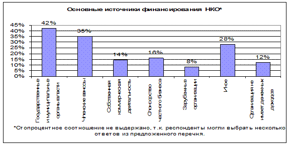 Виды и формы взаимодействия. Учитывая установленную выше важнейшую роль государства в финансировании НКО, взаимодействие государственных органов и органов местного самоуправления с областными НКО следует делить на два основных вида: экономическое и организационно-информационное. Основные экономические формы взаимодействия: безвозмездная имущественная поддержка НКО, совместная реализации социальных проектов, размещение государственными и муниципальными органами социального заказа, конкурсное распределение грантов. Самыми распространёнными организационно-информационными формами взаимодействия являются: координационные советы, совместные заседания, обмен информацией, юридическое просвещение и консультирование, методическая помощь. Ответы на вопрос «В какой форме Вы получаете поддержку от органов власти и управления?» позволили сформировать иерархический перечень укрупнённых форм данной поддержки.