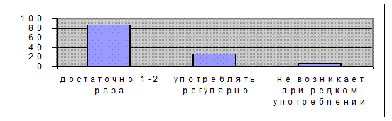 При ответе на вопрос: «Когда возникает опасность возникновения наркозависимости?» 87% ответили, что достаточно попробовать 1 – 2 раза, однако 8% сказали, что при редком употреблении такой зависимости не возникает.